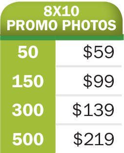 Full Color 8" x 10" Promo Photos on 12pt Kromecoat. Perfect for autographing at your shows!