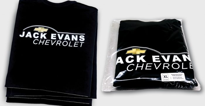 Jack Evans just reordered their sharp looking black t-shirt. All shirts are individually bagged and labeled, so it’s easy to find the size you want. We can make your logo
