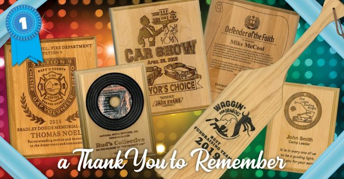Every year various local organizations call us to order custom engraved wood plaques and paddles. Whether it’s the yearly Waggin’ for Dragons Paddle fundraising award for our friends at the